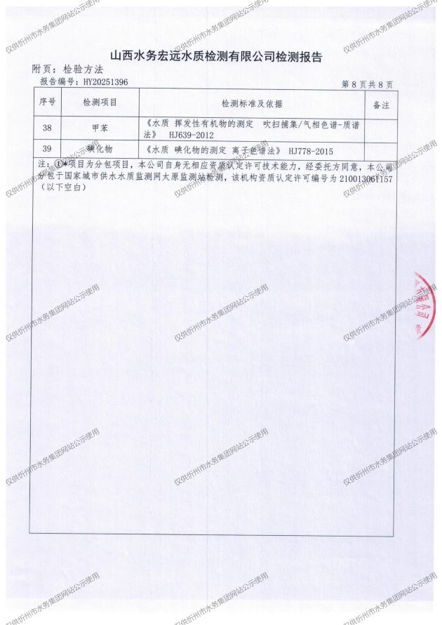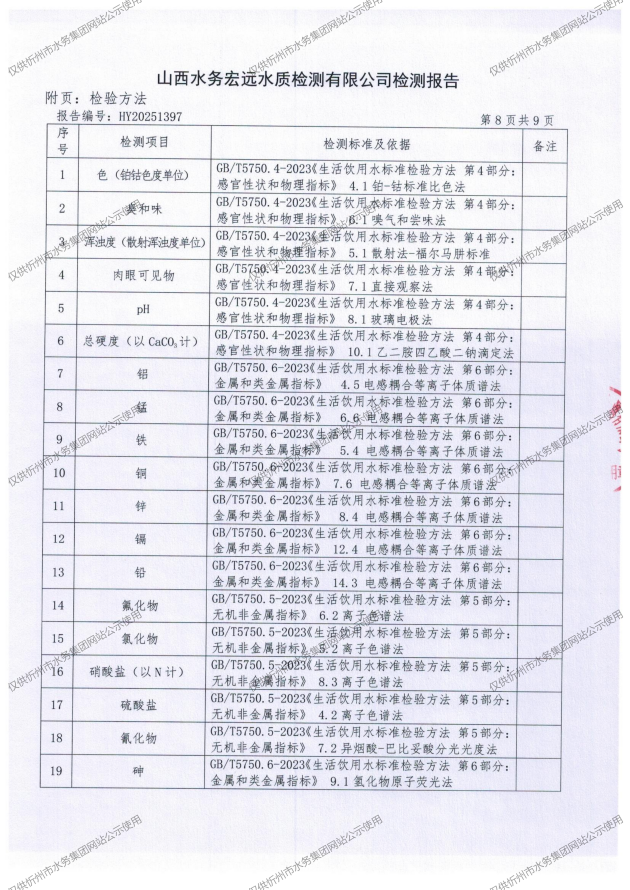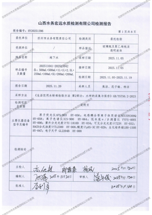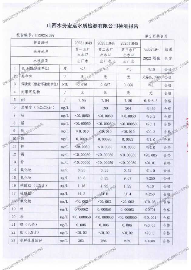 忻州城區(qū)公共供水水源水、出廠水、管網(wǎng)水、管網(wǎng)末梢水2025年11月份水質(zhì)信息公示