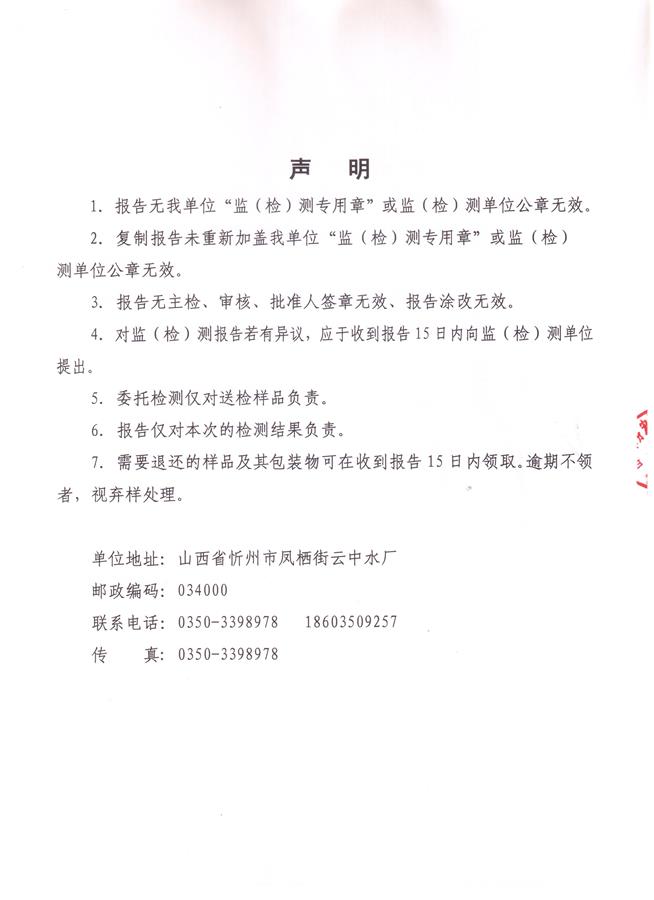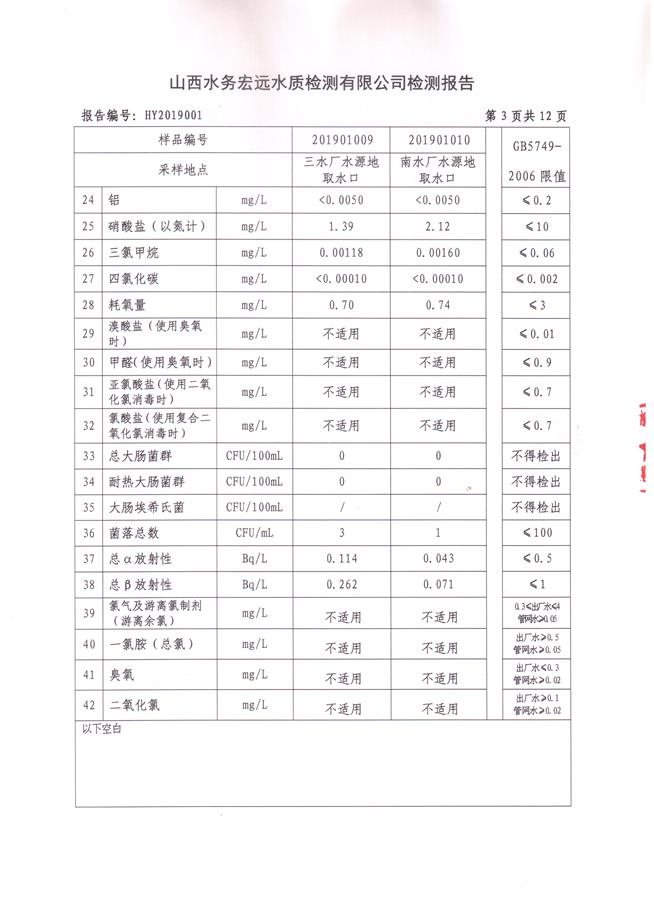 忻州城區(qū)公共供水水源水、出廠水、管網(wǎng)水、管網(wǎng)末梢水2019年1月份水質(zhì)信息公示